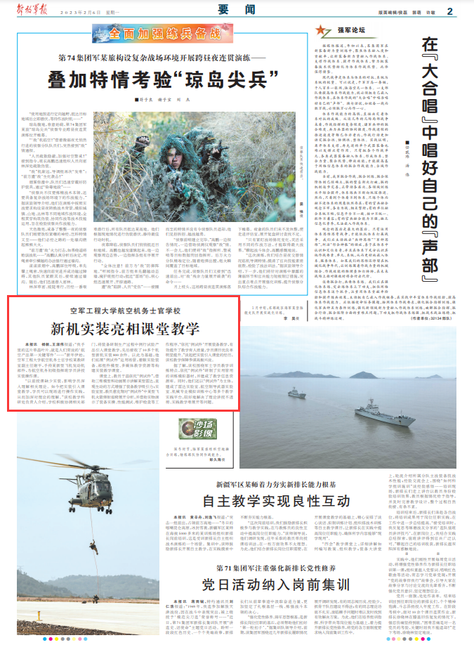 课堂上,教员于晶依托“例试件”,借助三维模型和动画展示讲解某型雷达,直观生动的方式增强了装备教学吸引力;实验室里,教员惠克翔对“例试件”中某型飞机火箭弹射座椅展开分析,并借助实物演示了装备实操、性能测试、维护检查等工作程序。“依托‘例试件’开展装备教学,有效提升了教学育人质量,学员课目优良率明显提升。”谈起把实装引入课堂的经历,该校教学保障参谋高振兴说。